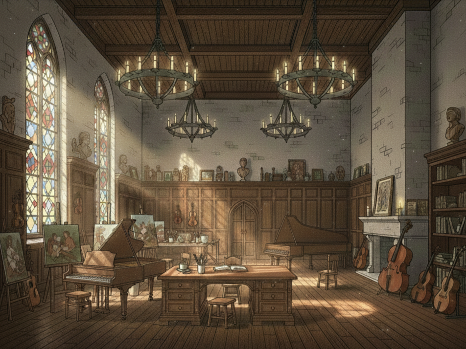 En fouillant les côtés de l’instrument, elle remarqua des petits boutons incrustés dans le bois. Elle en tourna un, puis un autre. Un clac sec résonna, et soudain, le clavecin s’anima : un son cristallin éclata dans la pièce, rebondissant contre les murs comme un écho du passé.