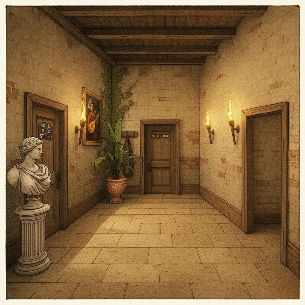 Son regard glisse sur la petite plaque en bois, sur la fenêtre dépoli de la porte, et un sourire discret lui échappe. Passionnée de musique, elle revient parfois ici, accompagnée de l’enseignante référente, pour jouer quelques notes au piano ou travailler une mélodie. Même si elle n’ose pas le dire, cet endroit est un peu son refuge.